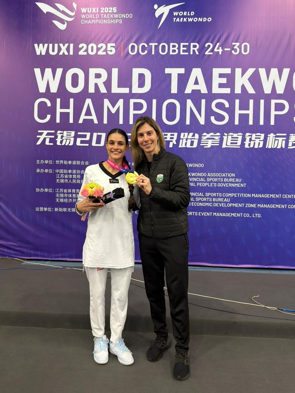 Quando Natália Falavigna ganhou o Mundial de Taekwondo em Madrid, na Espanha, em 2005, Maria Clara Pacheco tinha apenas dois anos de idade. Desde lá para cá, o Brasil não tinha voltado ao topo do pódio no campeonato. O jejum de duas décadas teve fim nesta sexta-feira, 24, com o ouro da jovem Maria Clara Pacheco no Mundial de Wuxi, na China, contra a coreana Yu-Jin Kim. O feito contou com o olhar de perto da agora gestora esportiva Natalia Falavigna.